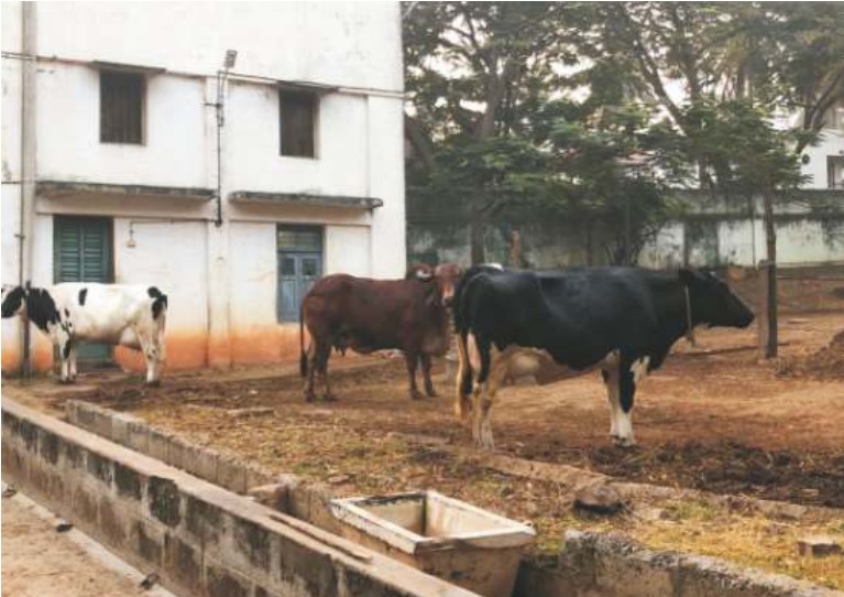 We have Gaushala at our campus which has about 15 Kamadhenu's of Gir, Sahiwal, Desi Breed. Kamadhenu's give fresh milk which cater to the needs of our hostel. The cow dug and urine is stored decomposed and used for garden and plants at our campus.